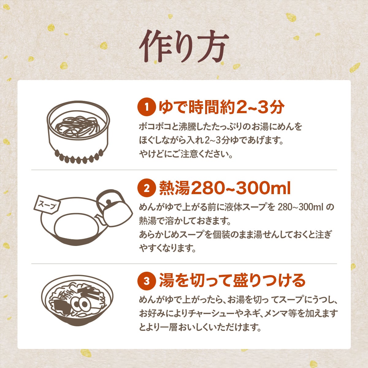 ※めんにはおいしさを保つ為に酒精(アルコール)を使用しています。開封時にアルコール臭がしますが、茹でると臭いはなくなります。安心してお召し上がりください。